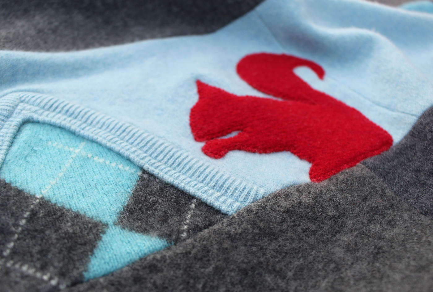 Woodland creatures were on my mind as I started this blanket—but it was the argyle that made the story take shape. A patch of argyle here, another there, it made me think about flipping poor little Peter’s story. Just for today, can we get Peter safely home with his new blue jacket on his back and no tummyache from disobeying his momma and gorging on Mr. McGregor’s produce?