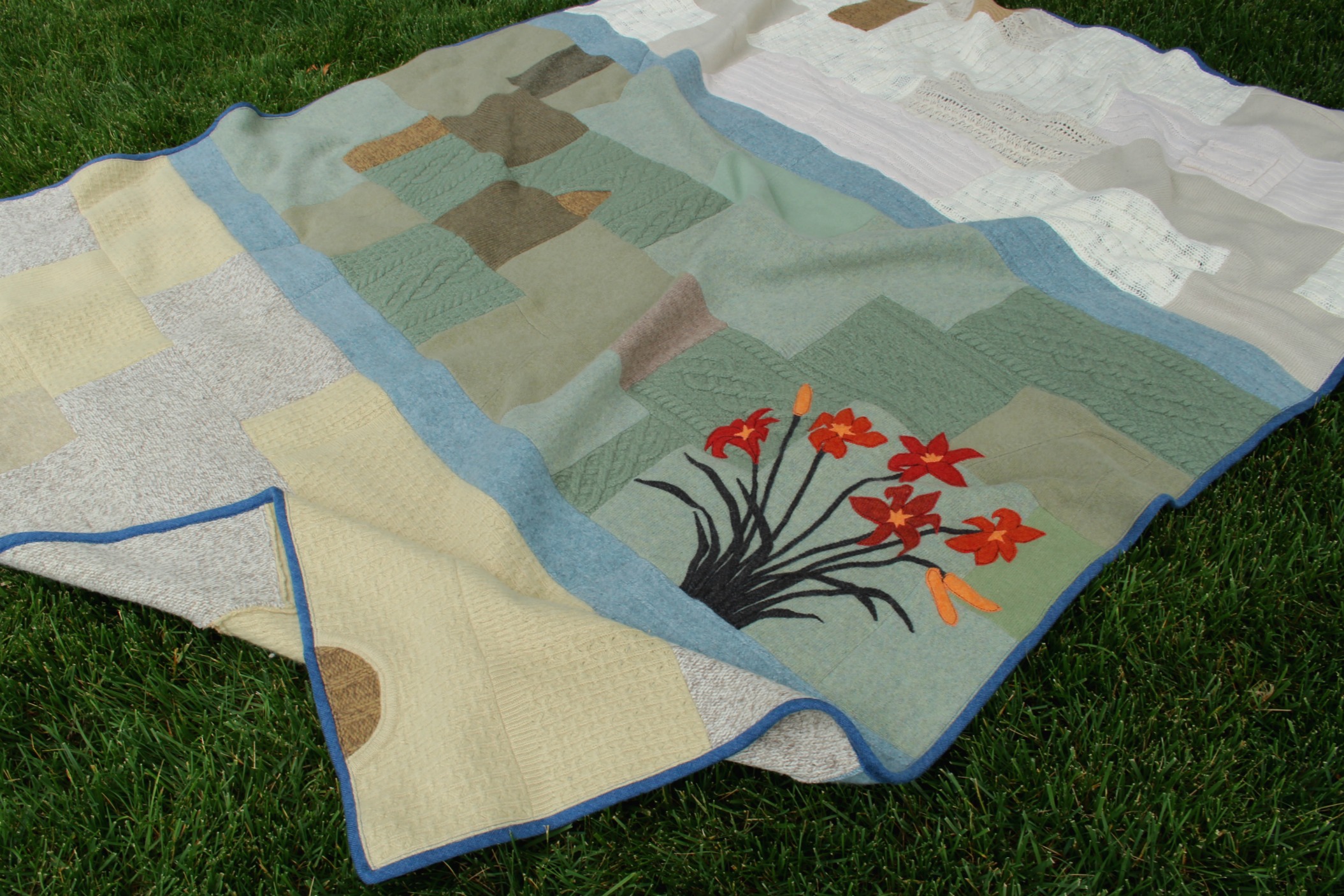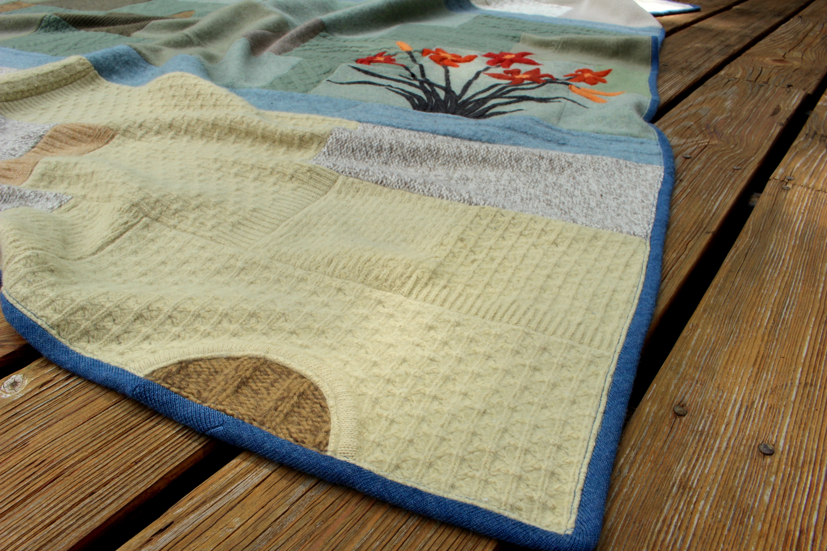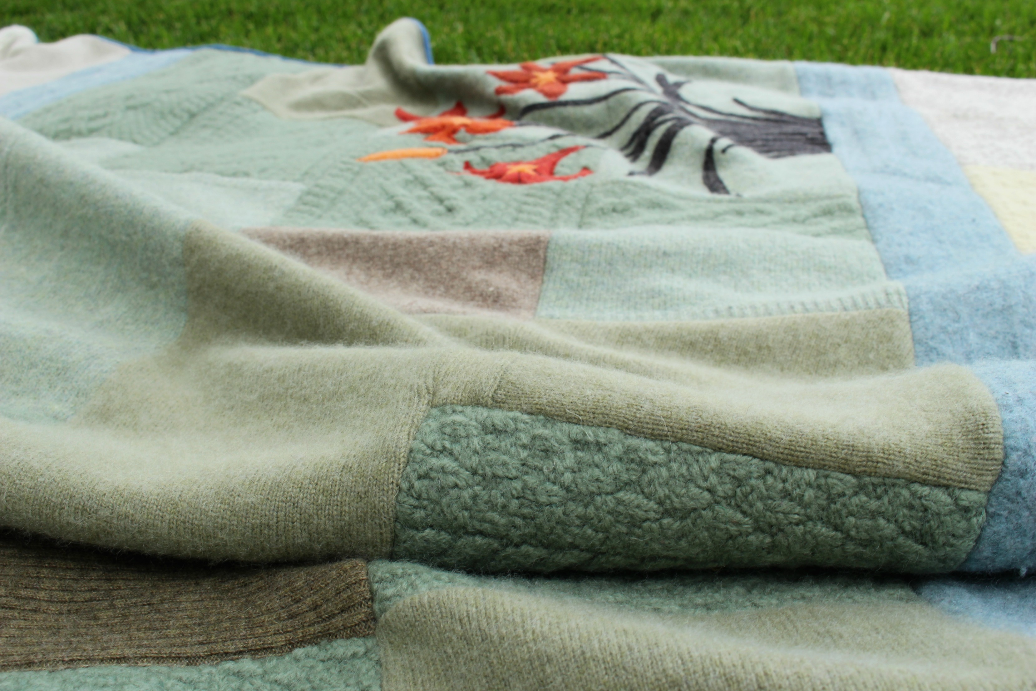 It was enough. I divided the prepped sweaters into two groups, threw in a few pieces from my own sweater collection, and immediately began laying out the first set, all without an ounce of floundering. I can’t explain how that little conversation made the difference, but it did. And I ended up having a ball creating these two unique blankets.