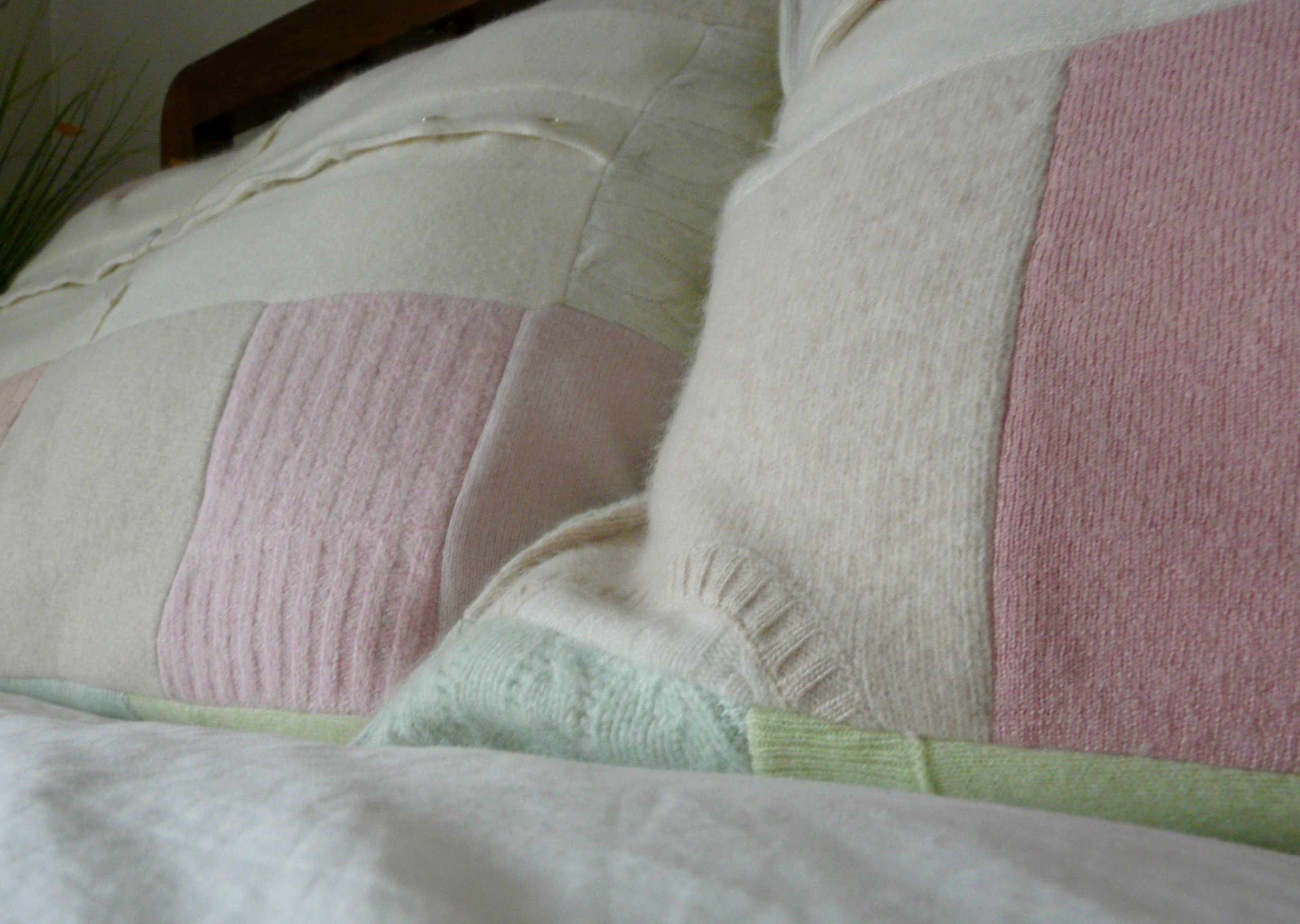 I’ve had the sweaters for this blanket matched up for some time, just waiting. Even before they were a blanket, I thought they were comforting together — like being indoors — cozy, warm, and contented — on a rainy day.