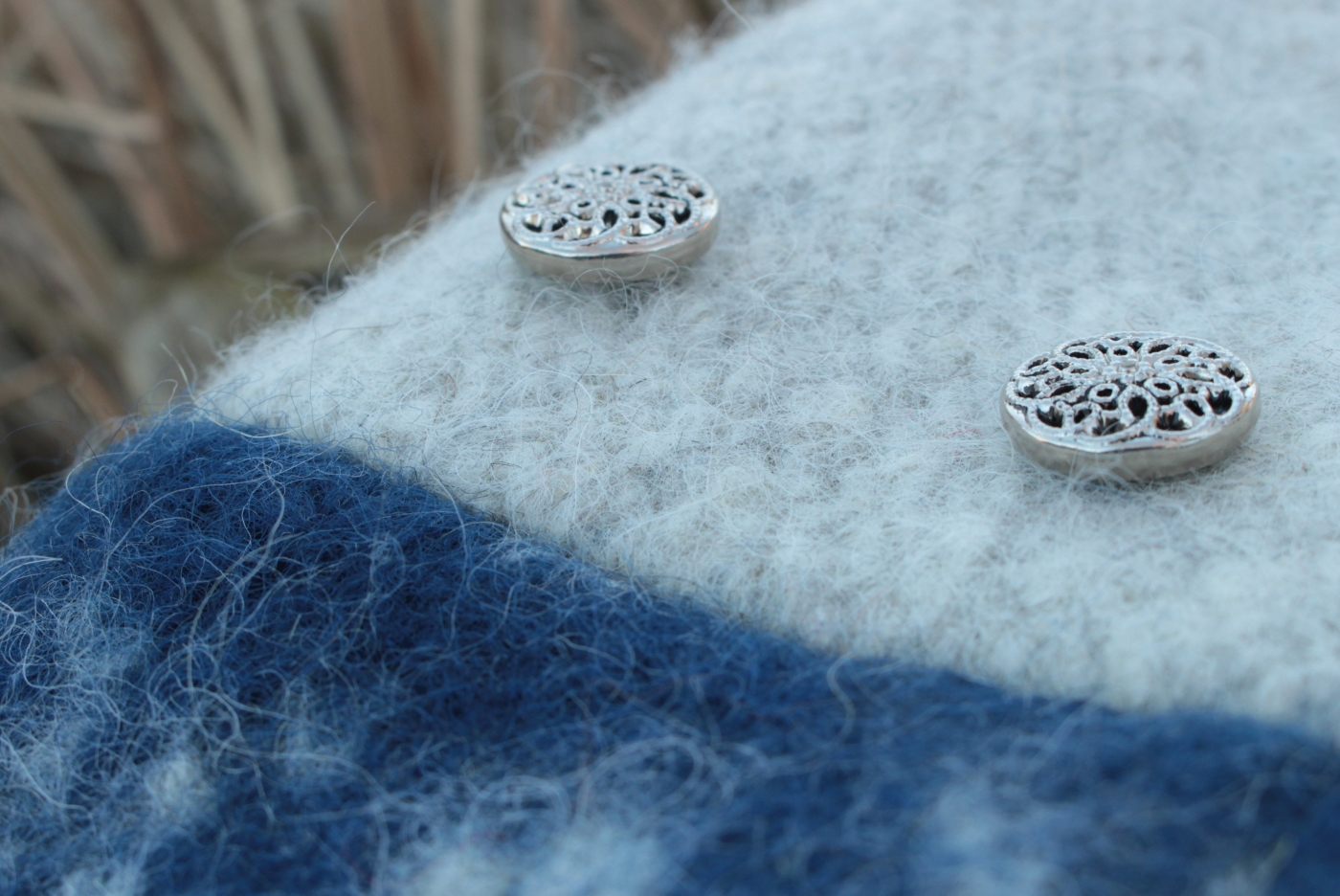 When Bill first showed me Nan’s sweaters, I was pretty sure the two colorful ones hand-knit by her (one with her favorite bright turquoise blue) did not contain much if any wool. It was true; they did not felt up with the others and so I wasn’t able to include them. But the wools I was left with were a beautiful collection of more masculine colors, perfect for me to work with for Bill.