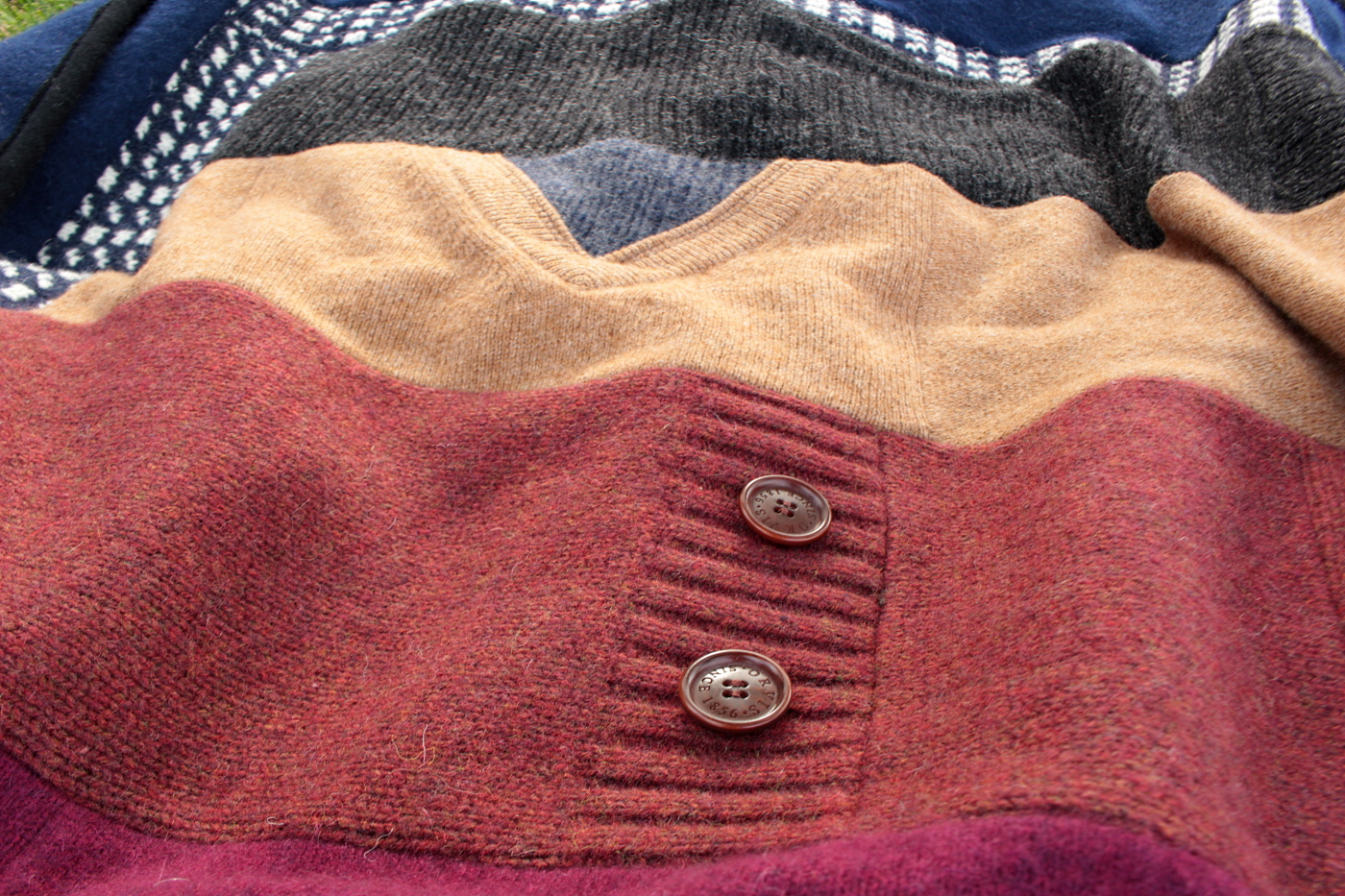 My assignment: to take more than 2 dozen sweaters and combine them pleasingly for 3 unique blankets. I needed to make sure that sweaters that were particularly significant to each family member made it into their blanket.